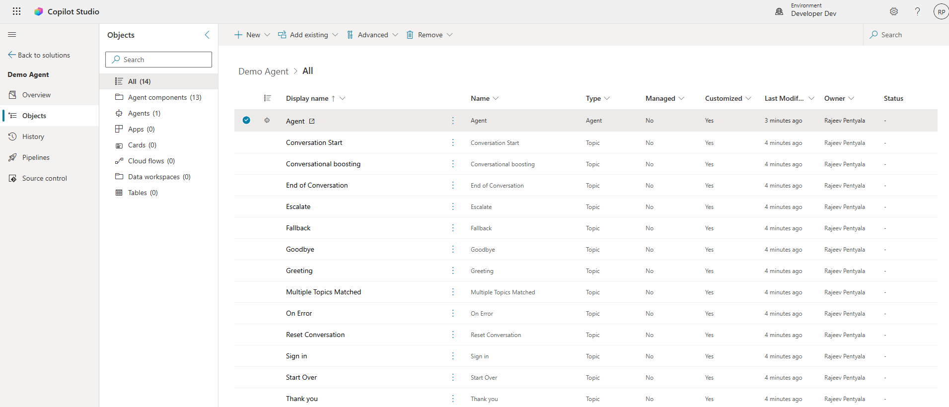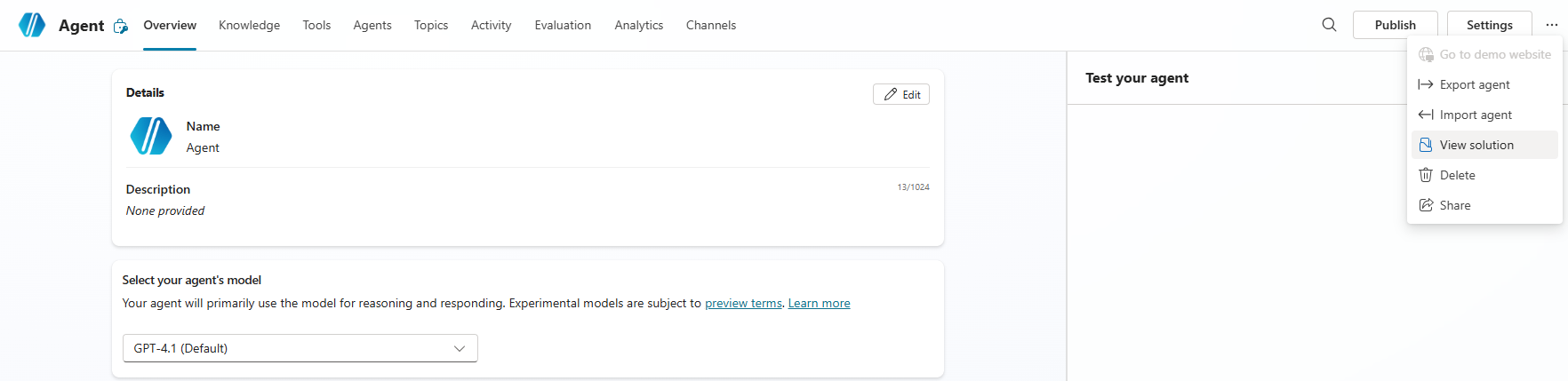 To verify whether the agent has been added to the selected Dataverse solution, click View Solution.