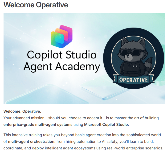 In 2025, Microsoft released the Agent Academy: Recruit learning path, which serves as a foundational course for anyone new to building agents in Copilot Studio.