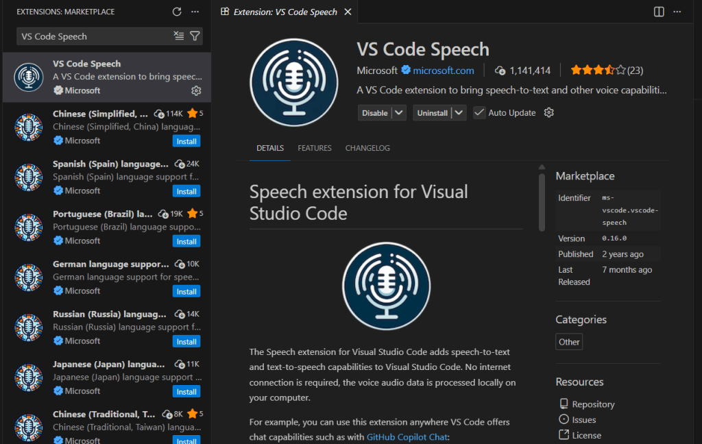 - VS Code Speech is an extension for Visual Studio Code that adds, adds speech-to-text and text-to-speech capabilities to Visual Studio Code.