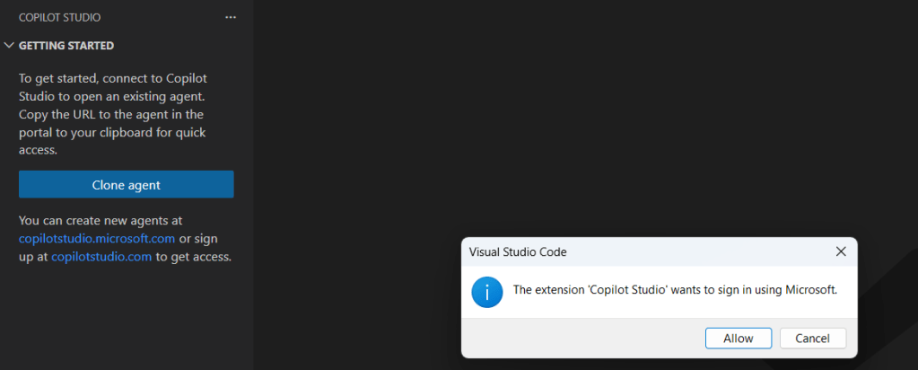 If you’ve installed the Copilot Studio extension for VS Code and tried to connect to your Copilot Studio environment using the command Copilot Studio: Sign in,
