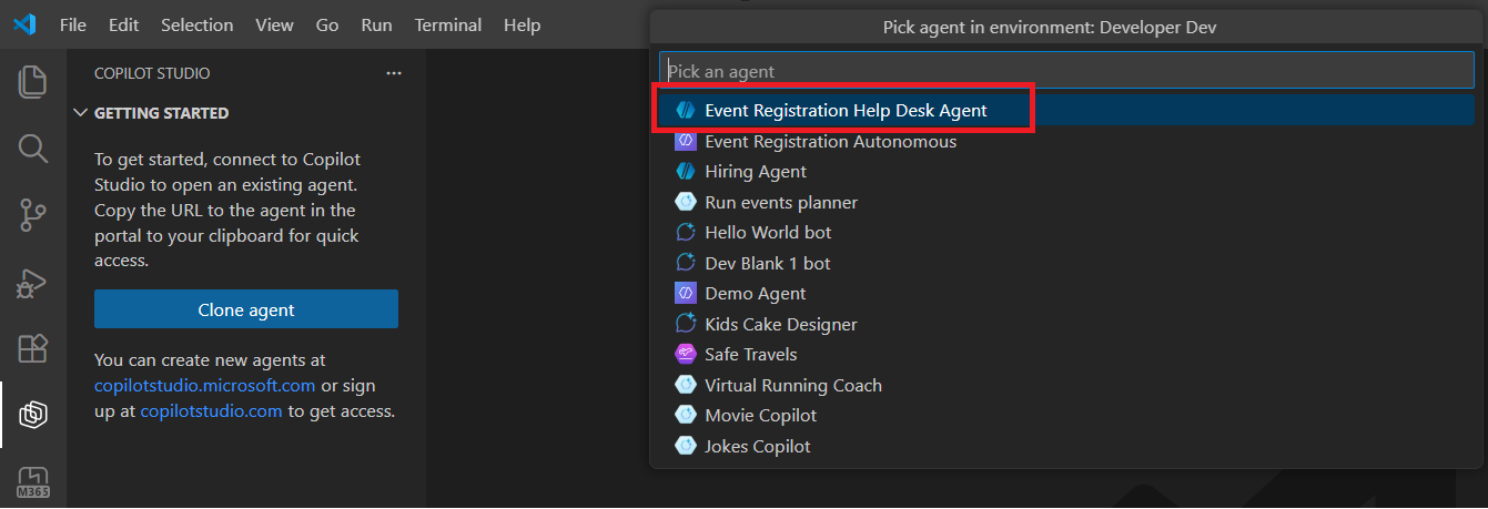 - Clone my agent into VS Code