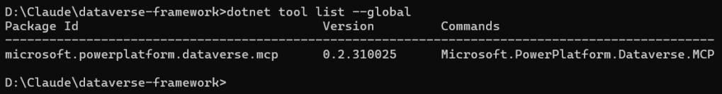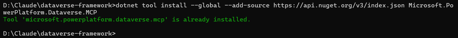 dotnet tool install --global --add-source https://api.nuget.org/v3/index.json Microsoft.PowerPlatform.Dataverse.MCP