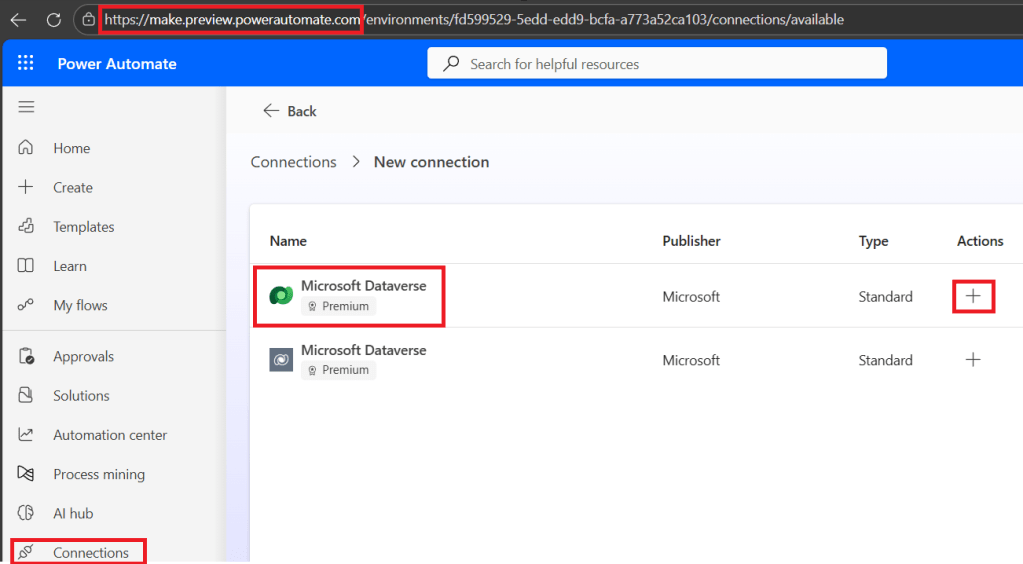 Next, we need a Dataverse connection that the MCP server will use for authentication. The important point is that you need to connect to Power Automate portal to perform below steps.
