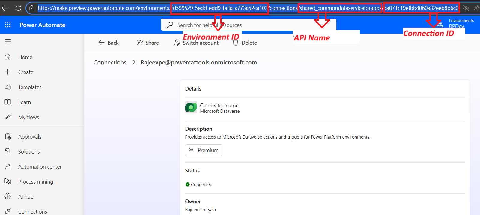 "https://make.preview.powerautomate.com/environments/fd599529-5edd-edd9-bcfa-a773a52ca103/connections?apiName=shared_commondataserviceforapps&connectionName=5a071c19efbb4060a32eeb8b6c0ec85b"