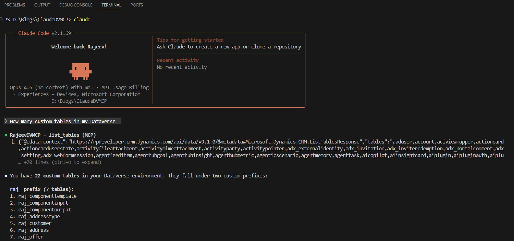 Now let’s verify that Claude Code can interact with Dataverse.