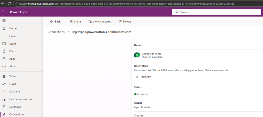 - Configure a Microsoft Dataverse connector connector in you Power Platform Environment