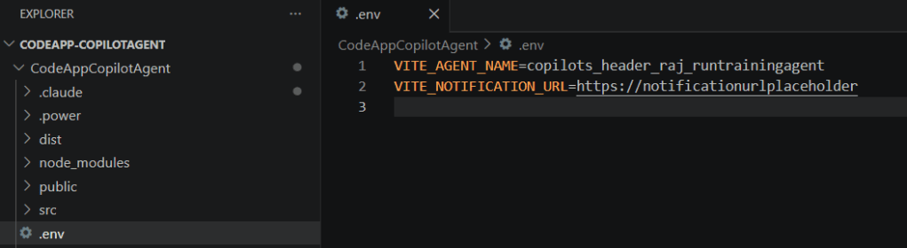 Update your `.env` with your agent schema name, run `pac code push`, and you should have a working chat UI connected to your agent in minutes.