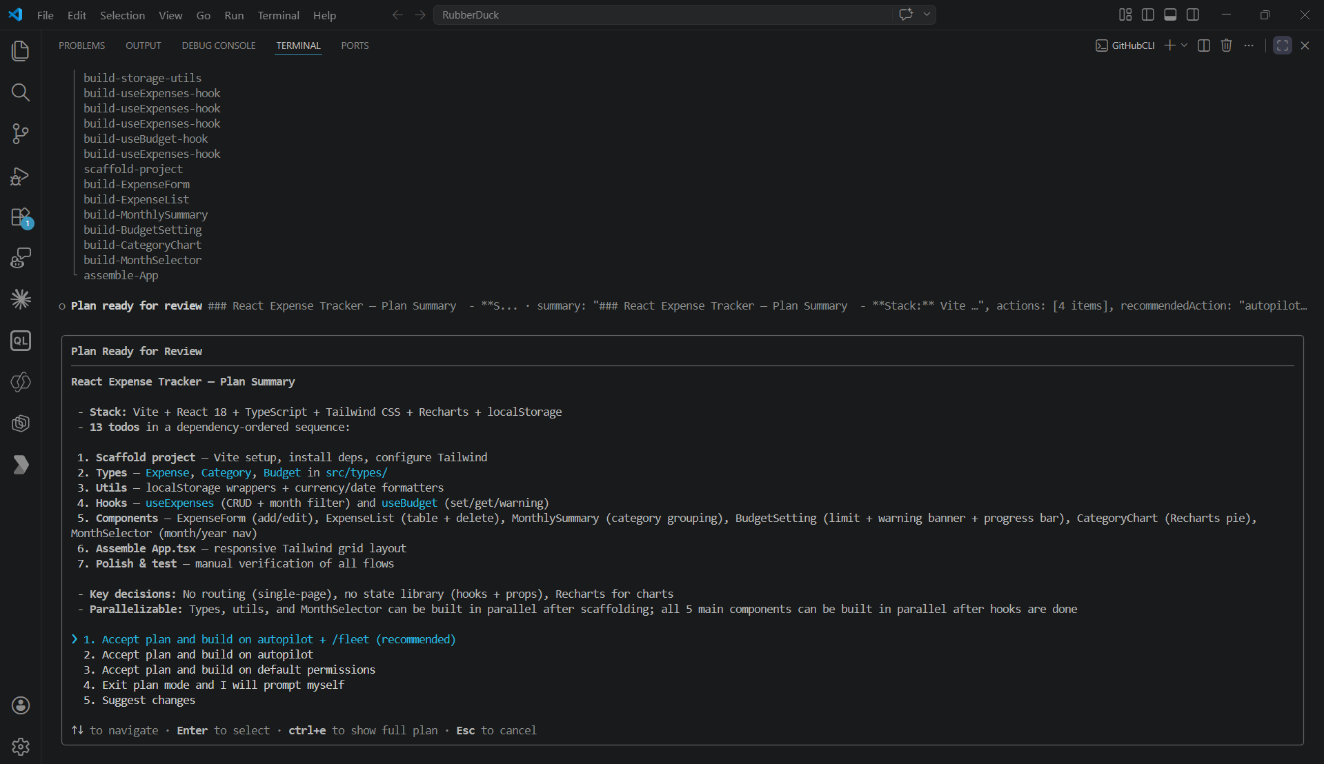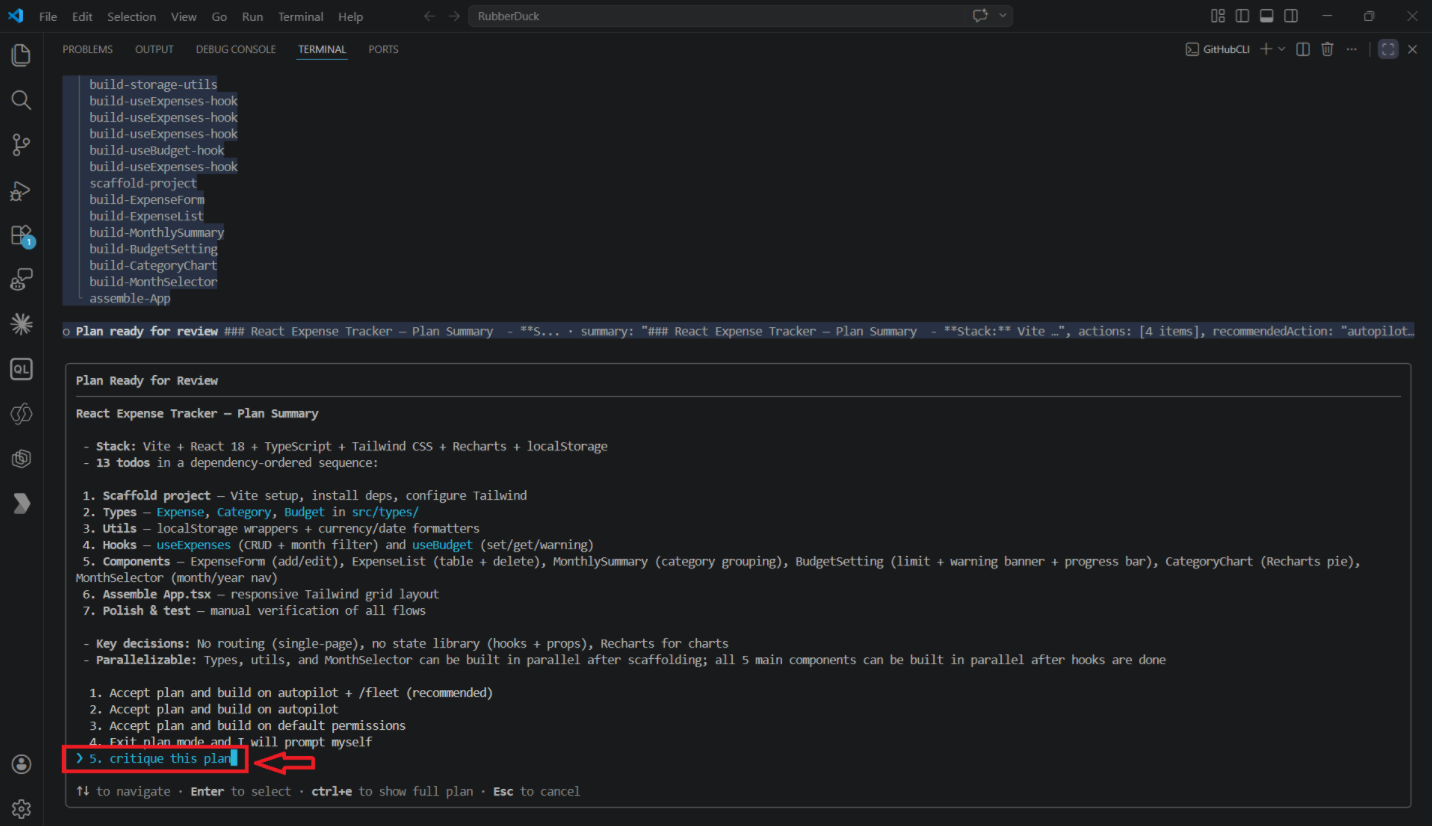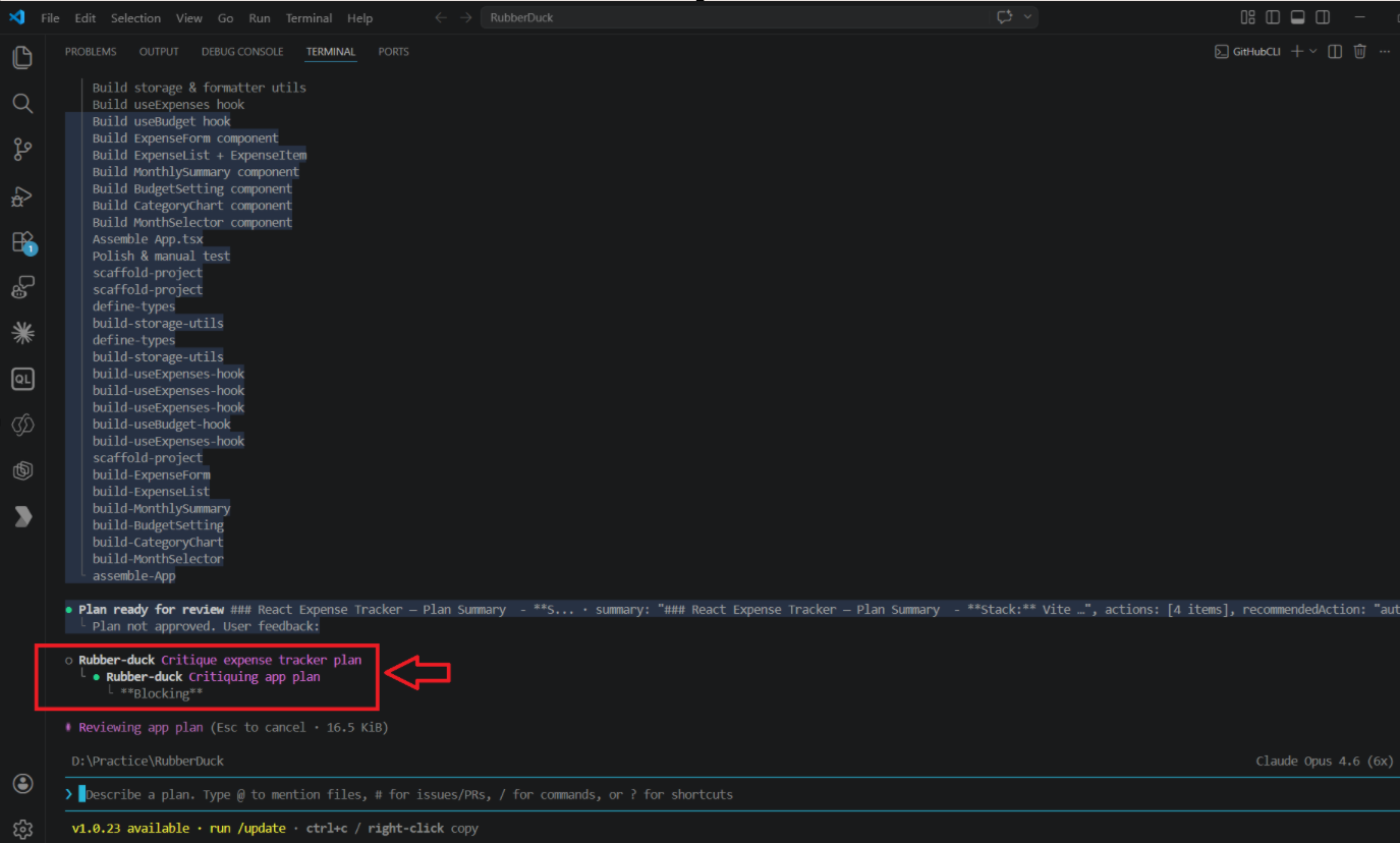 - Rubber Duck immediately kicked in reviewing the full plan generated in previous step.